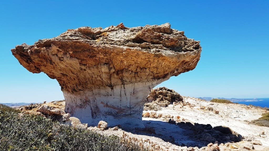 This is the most photographed place in Milos! Situated on the northeast coast, the pale grey volcanic rocks have been shaped by the winds into unusual shapes that look like a beautiful ‘moonscape’ that contrasts with the azure blue of the Aegean.