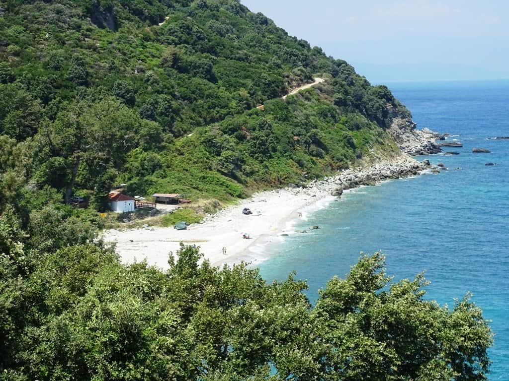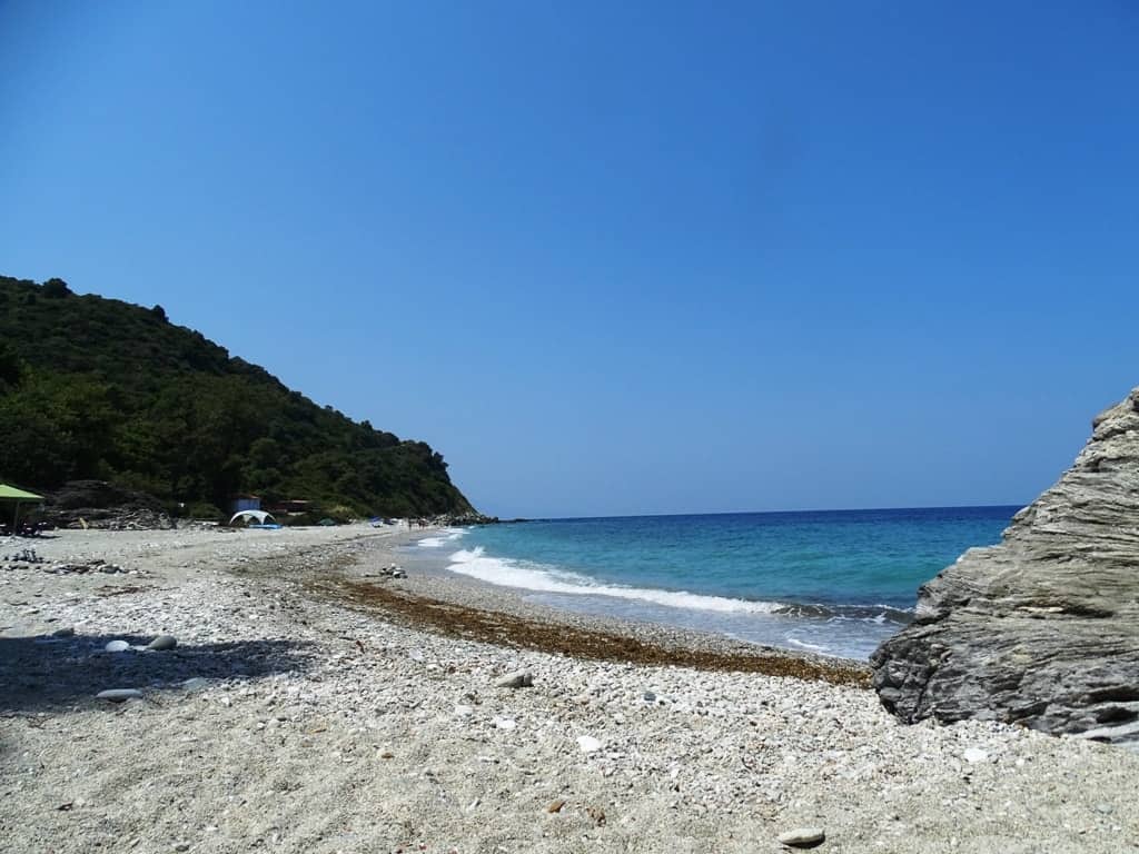 - Mylopotamos Beach – the most impressive beach in my opinion, with small white pebbles and sand divided in two by a big rock with a hole in the middle. You need to descend for 5 minutes in order to reach the beach. A part of Mylopotamos Beach is organized.