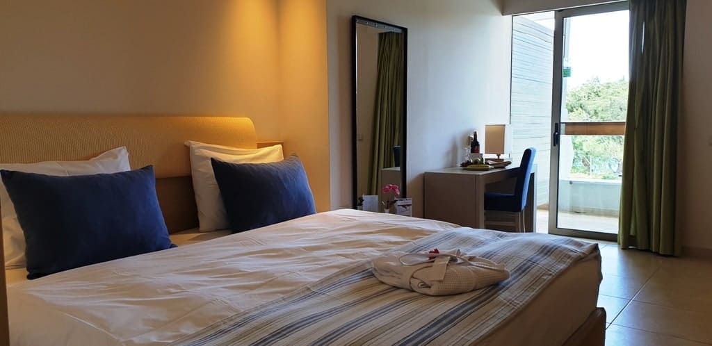 Perfect for those seeking an all-inclusive option on Crete, the Miramare Resort and Spa offers a variety of room types from standard double rooms to superior suites with private pools. Guests can book a simple room, a room with breakfast, half board, or fully inclusive.