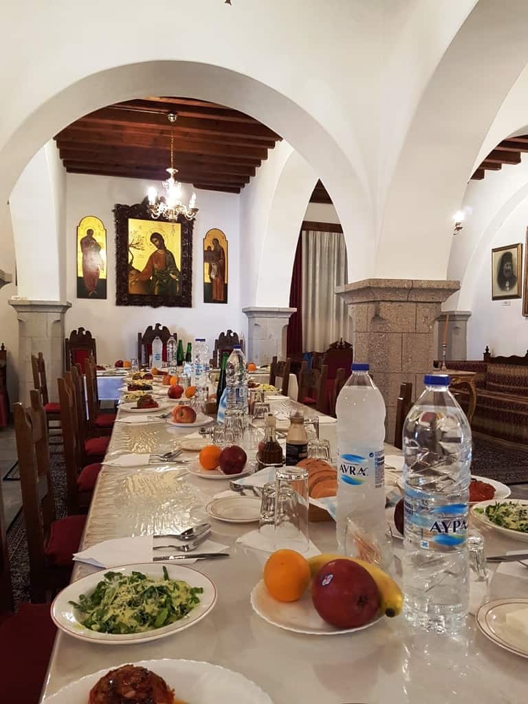Within the monastery are exquisite chapels, an impressive museum, precious relics, vestments, and garments, and an extensive library with over 2,000 volumes, 13,000 historic documents, and 900 manuscripts. We were very fortunate not only to visit the library that is open only to scholars but also to have lunch at the monastery.