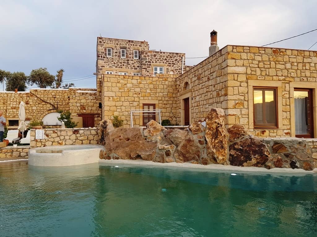 Porto Skoutari Hotel. Located only 1km north of Skala, this luxurious hotel boasts sweeping rooms decked out in antique furniture, lush gardens, and beautiful sea views. I had the pleasure of staying there and found the owner and staff to be of attentive and excellent service. Amenities include a spa center, a gym, a Greek buffet breakfast, high-speed Wi-Fi, and free hotel transfers.