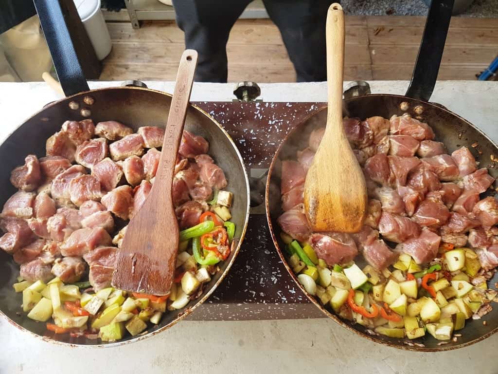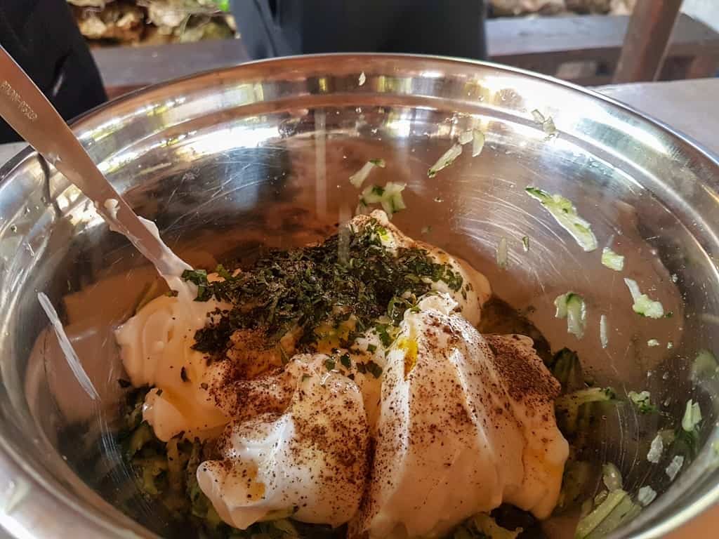 During our visit to the farm, we walked through these gardens to pick what we wanted to use for our cooking lessons. Cooking lessons take place in an open-air kitchen on the porch. This is where we made our own cheese, tzatziki sauce, salads, and pork. It’s also where we drank raki and dined on our homemade meal. The farm is a great place to learn more about the traditional foods and drinks of Crete.